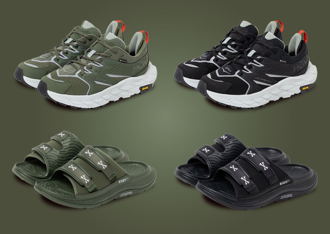 Japanese streetwear label WTAPS, known for its military-inspired designs and collaborations, has partnered with Hoka to produce a new collection that merges streetwear aesthetics with performance footwear. WTAPS has a rich history of partnerships across the footwear industry, and this latest collaboration brings a fresh take on Hoka’s popular silhouettes. The WTAPS x Hoka collection includes: