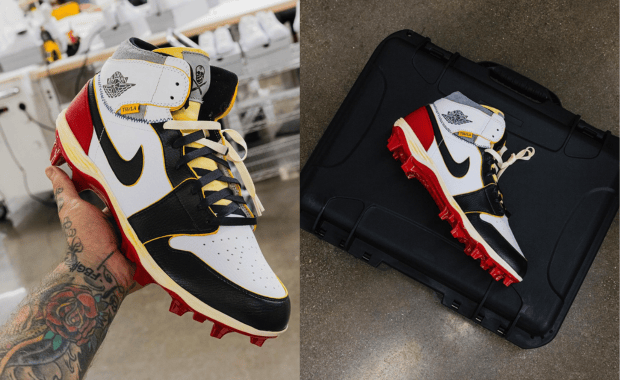 George Kittle Rocks a Custom Union LA-Inspired Air Jordan 1 Cleat by The Shoe Surgeon