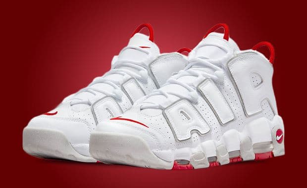 This Nike Air More Uptempo Gets Accented By Grey And Red