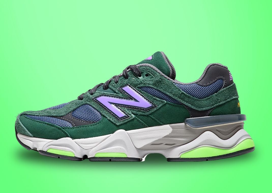 Taking on the all-new sneaker, the "Nightwatch" works on top of a breathable blue base and is overlaid by lush green suede panels across the board. Clean lilac accents hit the New Balance branding on the sidewalls, tongue, and heel, and additional purple tones can be found speckled throughout the flat laces. Of course, you can't talk about the 9060 without mentioning the extra chunky midsole. Spotted here in a white and lime green color scheme, the bulbous proportions nod to NB sneakers of the past and the future. This is then finished off with a see-through heel clip that wraps around the back of the shoe, finalizing the one-of-a-kind design.