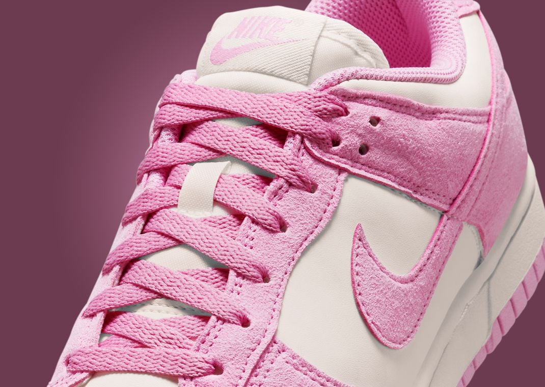 Opting for a two-tone color scheme that we have all come to know and love from the Dunk Low, this Sail Pink Rise iteration spreads the titular hues across the fuzzy suede and leather upper. Pink Rise suede appears on the mudguard, eyestays, Swoosh, heel overlay, and lacing setup. Below this sits a sail-shaded synthetic leather on the perforated toebox, midfoot panel, and collar.